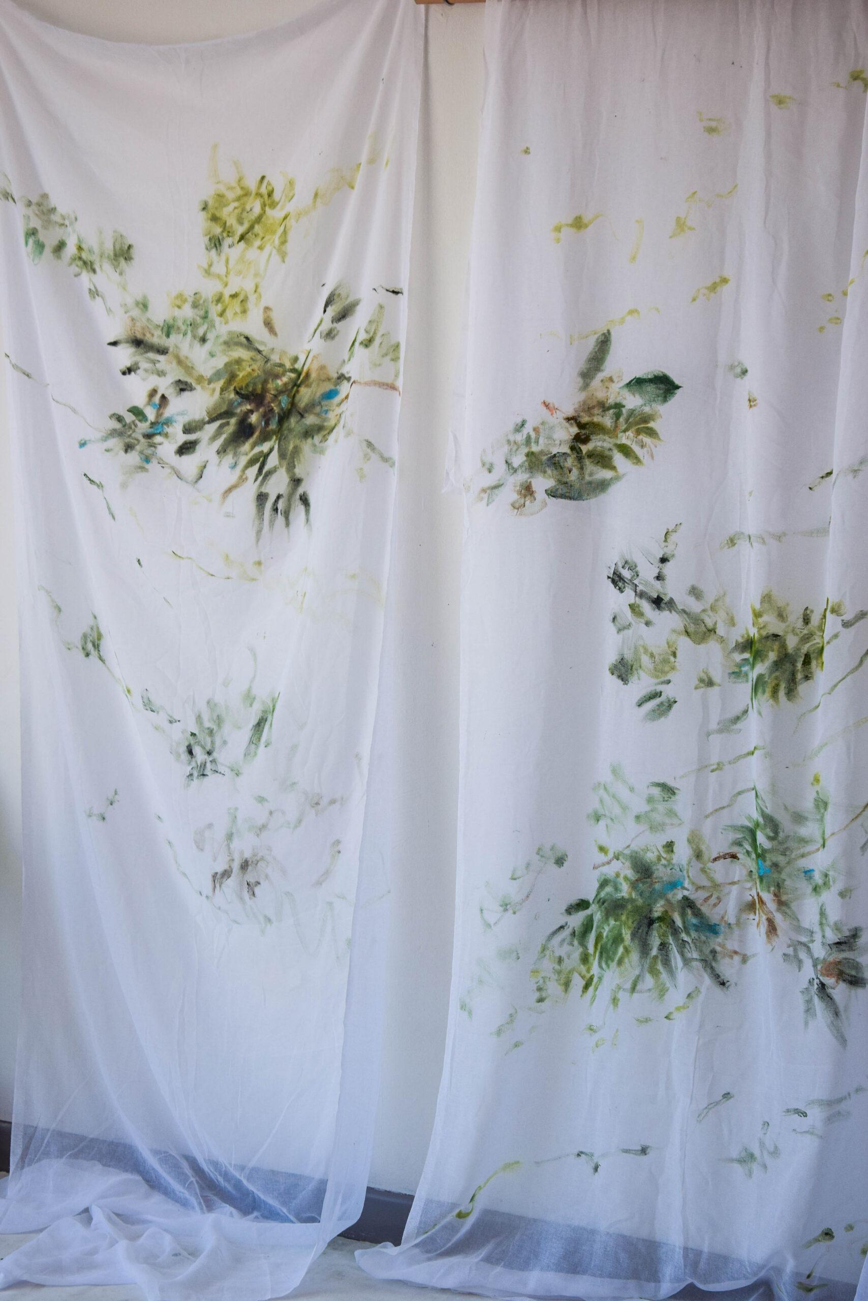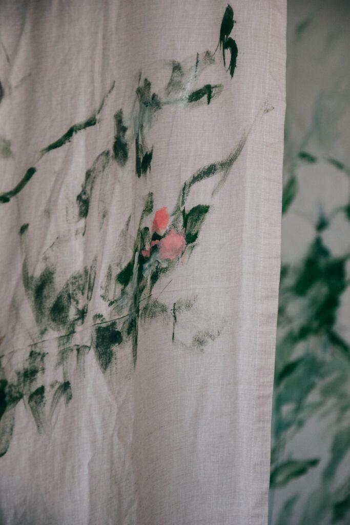 Molte delle mie opere sono realizzate su tela naturale e grezza, che amplifica il senso di autenticità e connessione con la terra. Uso anche tessuti tradizionali come il DEGERMI albanese, un cotone sottile che simboleggia il legame tra passato e presente. Questo tessuto, tramandato di generazione in generazione, veniva indossato dalle donne del Nord Albania come velo, per modestia e tradizione. Oggi, lo utilizzo per ricordare la bellezza e la resilienza di queste donne.